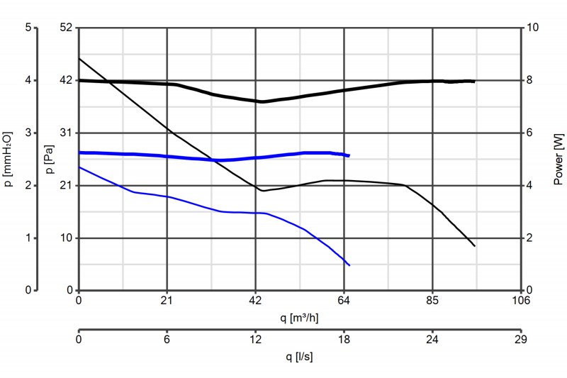 pasirenkamas įrengiant), 65/95 m³/h, 24,52/46,09Pa, 20,8/26,9 dB(A), 5/9W, 230V